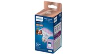 Coup de projecteur sur votre confort et votre bien-être ! Ces spots intelligents possèdent la forme standard GU10 que vous connaissez et appréciez, mais leurs lentilles en verre véritable apportent une touche d'élégance supplémentaire. Ils offrent également un atout qui est tout sauf classique : une lumière blanche réglable pour s'adapter à tous vos besoins et à toutes vos humeurs. Programmez une lumière blanche froide lorsque vous avez besoin d'accomplir des tâches, ou une lumière blanche chaude et agréable lorsque vous souhaitez vous détendre, pour vivre dans votre maison de la manière la plus confortable. Bénéficiez en plus du contrôle vocal, via la télécommande WiZ ou l'application WiZ, que vous soyez chez vous ou ailleurs. Les spots Philips Smart GU10 se connectent à l'aide de votre réseau Wi-Fi existant. Aucun matériel, mise en réseau ni configuration supplémentaire n'est requis.