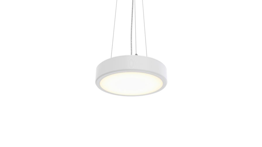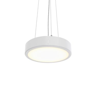 D390 mm; H85 mm, Polycarbonate, Blanc, Suspension, Système Interact Ready de gradation Dali, 1890 lm, 15.4 W, 123 lm/W, 4000 K, (0.38, 0.38) SDCM < 3, CRI>90, UGR19, Angle d’ouverture de faisceau 90°, Optique micro-hexagonale, Polystyrène, IP20 | Protection des doigts, IK04 | 0,5 J standard plus, Classe de sécurité II, 2 connecteurs à poussoir 5 pôles, Câblage traversant 1 phase, TP(b) diffuser flammability class