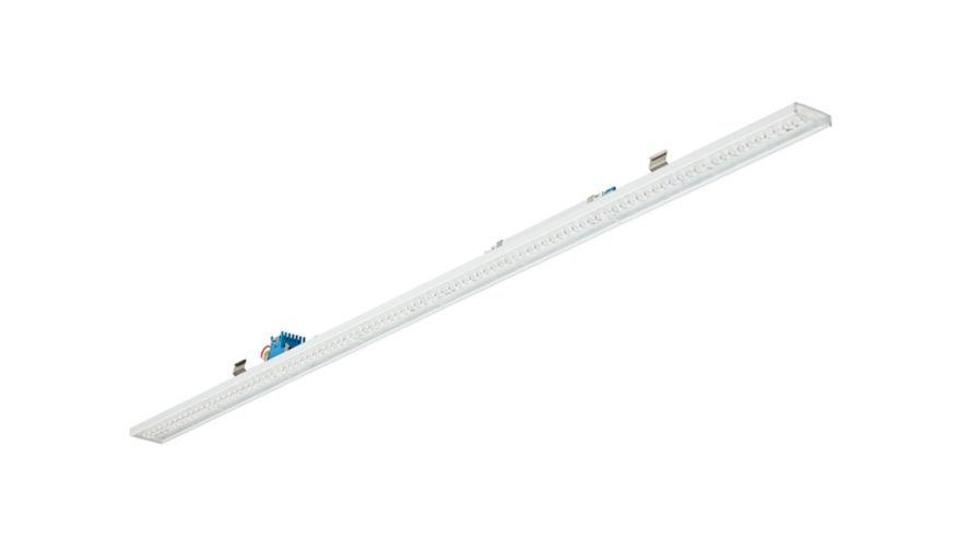 trunking light unit, 1478 mm, Acier, Blanc, Blanc de sécurité (RAL9003), Système Interact Ready de gradation Dali, 8000 lm, 48 W, 167 lm/W, 4000 K, (0.34. 0.35) SDCM <3, Faisceau intensif, Texturé, Méthacrylate (PMMA), IP20 | Protection des doigts, IK03 | 0,3 J, Classe électrique I, Unité de connexion 7 pôles